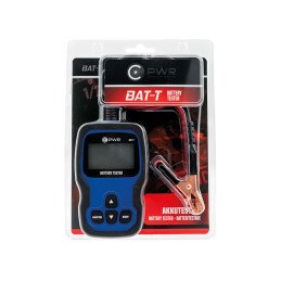 C-PWR BAT-T battery tester suitable for 12V and 24V lead acid, AGM, EFB, and GEL batteries (100-2000CCA). Functions: battery test, charge test, cold start power test, charging system testing. Multilingual system (Finnish, English, German, French, etc). Not ECE-approved, for diagnostic/workshop use only.