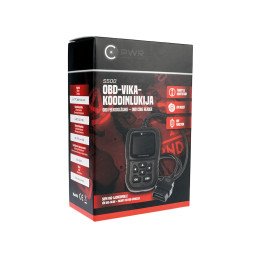 C-PWR OBD II S500 VAG, for most VAG vehicles (VW, Audi, Skoda, Seat) 1994–2019 with EOBD/OBDII. Supports UDS, TP20, TP16, KWP2000, KWP1281 (except electric). Reads, explains and erases fault codes, live data, service and ETC/EPB/TPMS reset, battery registration, I/M readiness, real time data, vehicle info (VIN, CID, CVN). Color display, multilanguage menu: English, Finnish, French, German, Spanish, Russian. Finnish & Swedish manual included. Not ECE-approved, for workshop/diagnostic use only.
