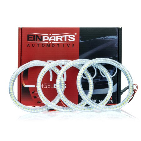 LED rings (Angel Eyes) BMW 3 E46 coupe (headlights with lens) (1998-2003) Specification: Diameter of larger rings: Internaldiameter90 mm /External diameter 106 mm Diameter of smaller rings: - Type of rings: LED LED diodes: LED SMD (4 x78 diodes) Color temperature: 6000K -cold white Canbus compatibility: Canbus ready (no OBC bulb errors) Additional information: - doesn't affect the radio reception Package contents: 4 x LED ring Automatic lightswitchmodule Double-sided adhesive tape Installation manual Warranty: 24months