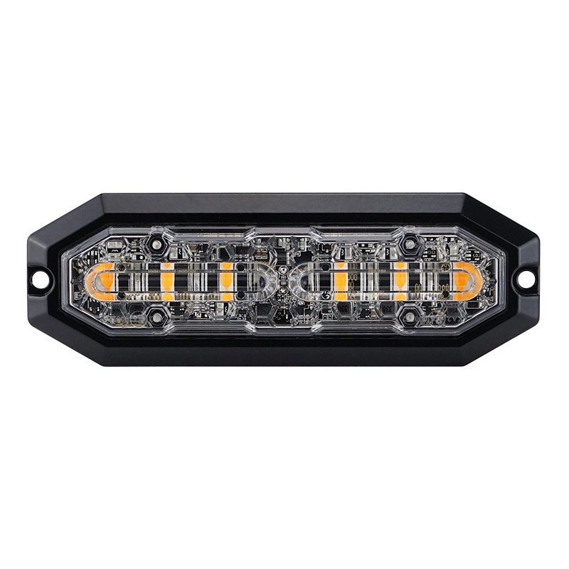 Dynamic amber strobe LED light, 6 LEDs, 20W, 12-24V DC, ECE R65 class 2 approved (main mode), day/night modes, IP68. Not ECE-approved as indicator.