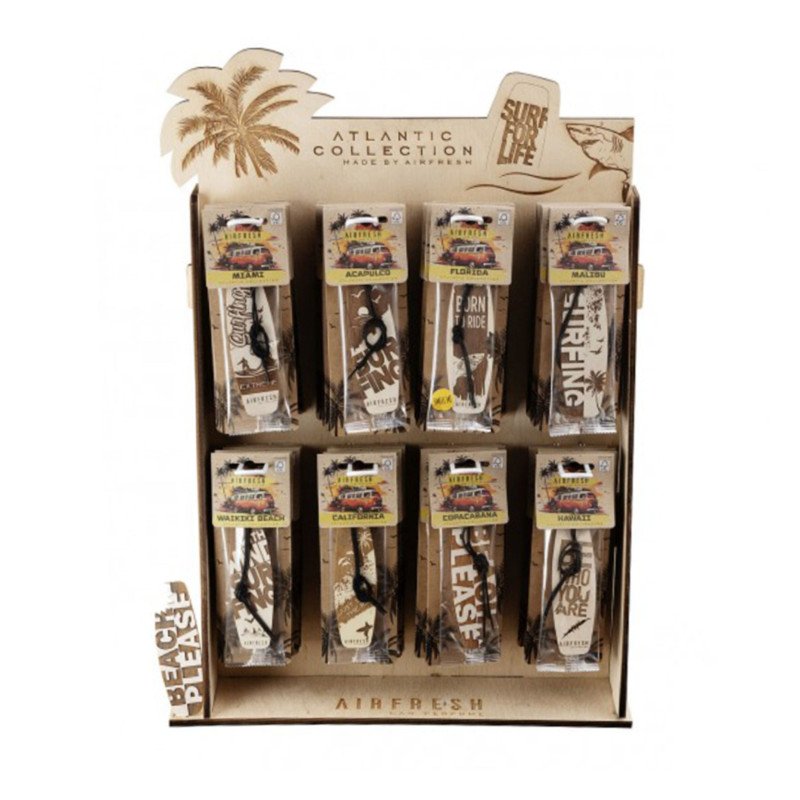 Each freshener is a lightweight wooden design with a printed label and string, inspired by beach vibes and holiday freedom. The ATLANTIC collection transports drivers to exotic destinations – from California to Hawaii – offering a wide selection of intense, refreshing and relaxing scents.