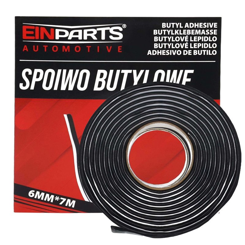 Butyl adhesive tape measuring 6 × 6 mm and 7 m in length, designed for professional sealing in automotive applications. The mass is flexible, easy to shape and fit – it can be shortened or stretched to achieve the required diameter and shape.