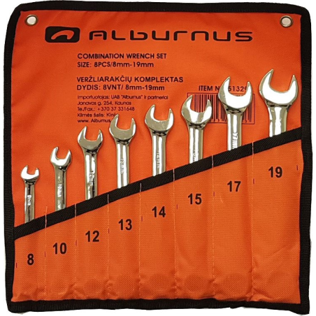13-Parametrai: aprašas:8 VNT; dydžiai: 8, 10, 12, 13, 14, 15, 17, 19 mm. | 14-Mato vnt.: KOMP | 16-Pakuotėje: 20
