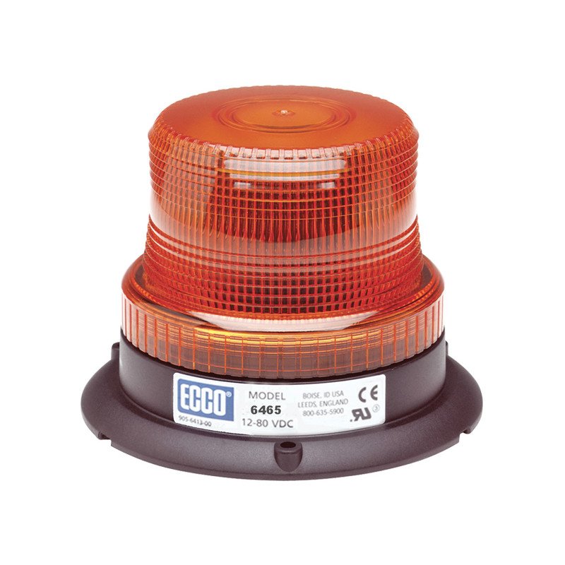 LED beacon, yellow, 3-bolt mounting, Pulse8 flash pattern (8 flashes per cycle), ideal for industrial use. Reinforced nylon base, polycarbonate lens, ECE R10 approved, -30°C to +50°C, current consumption 1.9A. Not for road traffic.