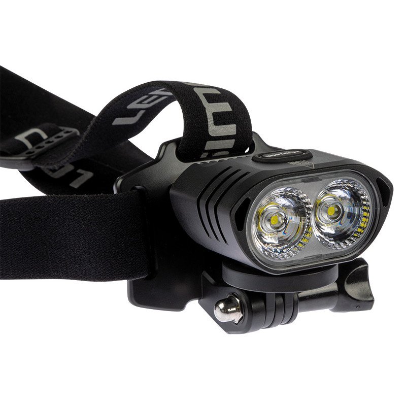 Rechargeable LED headlamp, effective brightness 3200lm (2x XHP50.2 LEDs), 7.2V 5200mAh battery with USB-C charging, double reflector. Operating temperature -28°C to +102°C. Includes reflective and sweat-resistant headband. 5-year warranty on lamp, 6 months on battery. Not for road use.