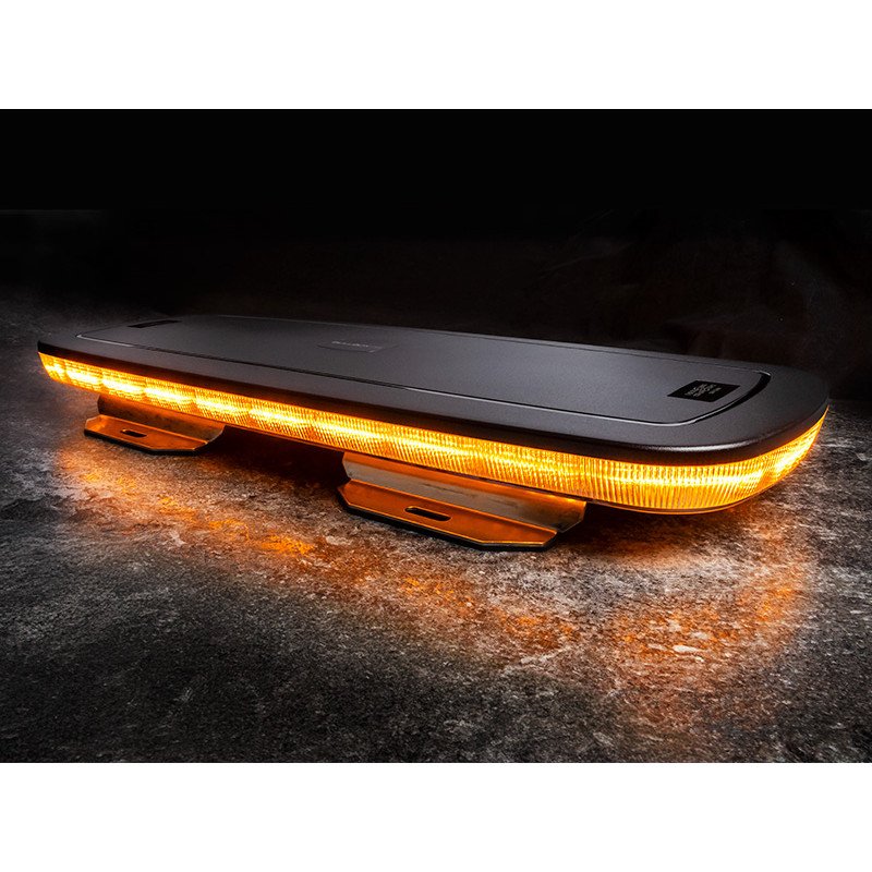 LED warning light bar panel, Bullboy 600mm, yellow, highly visible, 14 flash patterns incl. steady-on, reverse polarity protection, IP67, ECE R65 Class 2, ECE R10, CISPR Class 3.