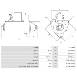 Starter new 12V/2.0Kw 10t CW -PLA CS1579 Denso-OEM