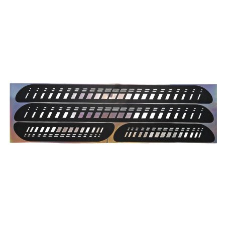 EPPF14 – Car Door Sill Protective Stickers, Black (4 Pieces) A set of protective stickers designed to protect car door sills from scratches, abrasions, and minor damages that occur during daily entry and exit from the vehicle. Made from durable and flexible PVC material, resistant to abrasion and weather conditions. Self-adhesive surface facilitates quick installation – just clean the sill, peel off the protective film, and stick the sticker. A universal set of four pieces fits most models of passenger cars. If necessary, the elements can be trimmed to better fit a specific sill. The stickers feature a decorative, perforated pattern and a holographic effect that enhances the look of the sills and attracts attention. Technical Specification: Dimensions: 50 x 4.5 cm / 25 x 4.5 cm Material: PVC Color: black with holographic effect Installation: self-adhesive Set: 4 pieces (complete set for all doors) Purpose: door sill protection Features: weather-resistant, easy installation, universal fit