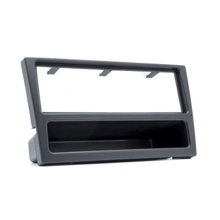 Dedicated mounting frame for car radio replacement. Ensures proper fit with factory mounts, latches and screw points. Size: 1 DIN.