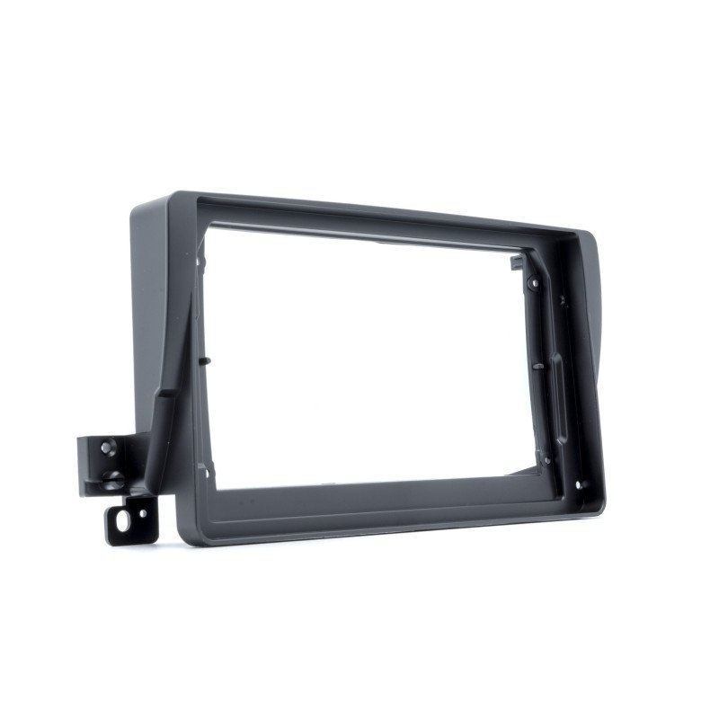 Mounting frame for installing a car radio in the OEM location; precise fit with clips and screw points.