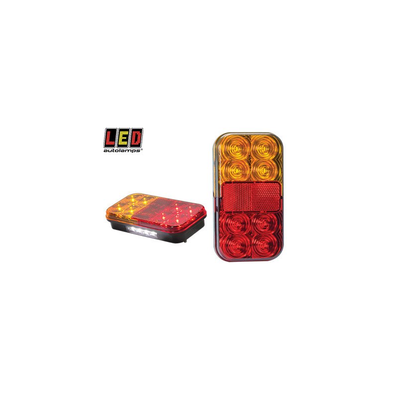 Compact combination rear lamp: stop, tail, indicator, license plate and reflector. ECE, EMC, IP67. Can be mounted vertically or horizontally. 2 screws, 100mm apart, 400mm cable. For small trailers. Road legal.