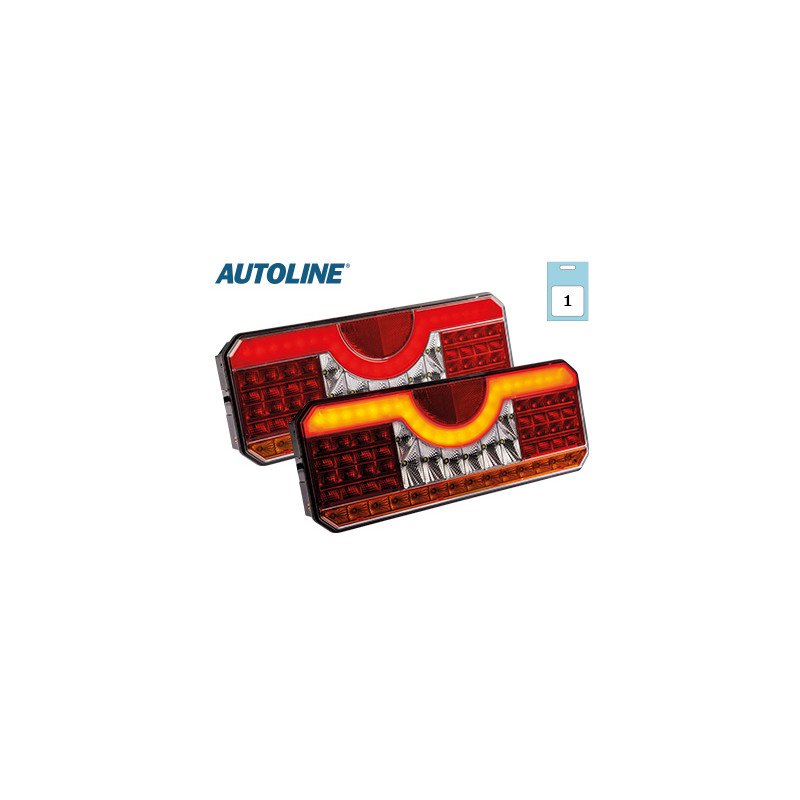 Left rear combo lamp: brake, tail, fog, reverse, license plate, dynamic turn signal (sequential effect). ADR, IP67, -40...+65°C, screws 150mm, cable 200mm. Road legal.
