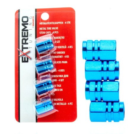 Aluminum Valve Caps - Light Blue, Set of 4 Pieces Elegant valve caps made of high-quality anodized aluminum, ensuring durability and resistance to corrosion. The hexagonal shape makes them easy to install and remove while giving the vehicle a stylish appearance. They protect valves from dust, dirt, and moisture. Fits: Standard Schrader (AV) valves used in cars, motorcycles, scooters, and bicycles. (Not suitable for Dunlop or French Presta valves) Inside the caps, there is a gasket that additionally protects the valve from dirt and air loss. Technical Specifications: Height: 16mm Outer Diameter: 10mm Inner Diameter: 7mm Material: Aluminum Color: Light Blue Quantity: 4 pieces