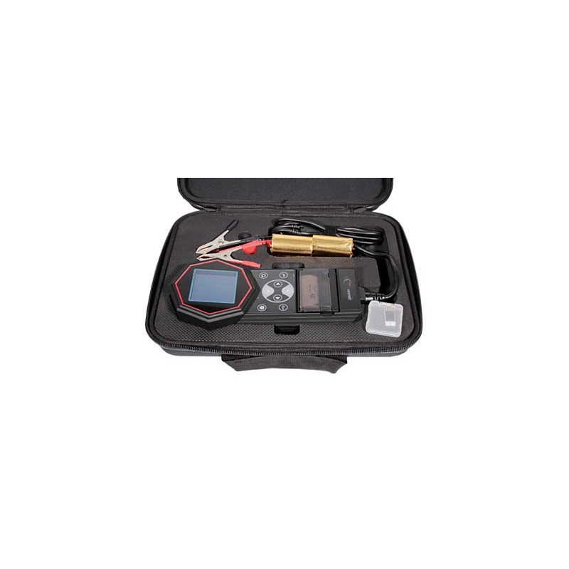 Akumuliatoriaus testeris ir elektros sistemos analizatorius 12V automobilių/motociklų akumuliatoriams, starterio/generatoriaus testas ir 24V sistemoms. Jutiklinis ekranas, integruotas spausdintuvas, itin mažas srovės suvartojimas testuojant (tikslu, galima kartoti be iškrovimo). Saugu: nėra kibirkščių spaudžiant gnybtus. Temperatūros kompensacija, USB duomenys, atmintis 70 testų. Tinka WET/EFB/AGM/gelio/Ca akumuliatoriams, 100A-2000A auto, 40A-600A moto. DC tikslumas ±1%. Apsauga nuo apgr. poliškumo. Terminis spausdintuvas (57,5mm ritinėlis). Nėra ECE patvirtinimo, tik diagnostikai ar dirbtuvėms.
