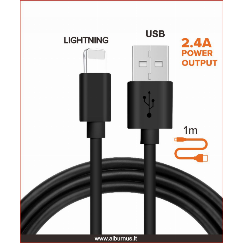 13-Parametrai: USB įkrovimo laidas su Lightning jungtimi, laido ilgis - 100 cm; 2,4A | 14-Mato vnt.: VNT | 16-Pakuotėje: 125