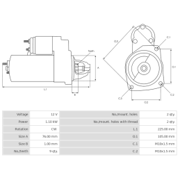 Starter remanufactured 12V/1.1Kw 9t CW -Nērings CS1272 Bosch-R