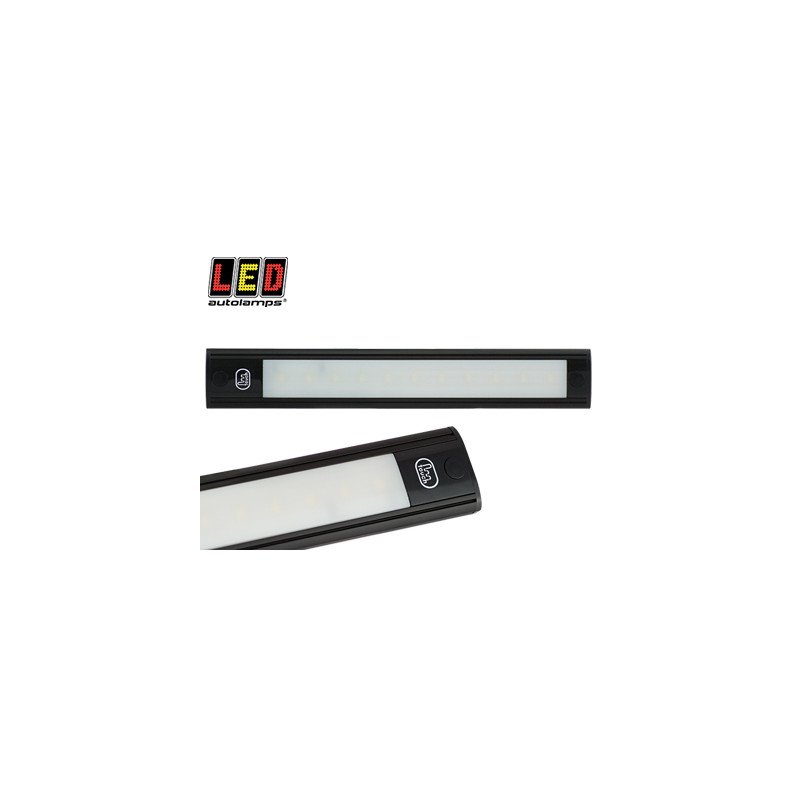 Jutiklinis įjungimo/išjungimo jungiklis, žemas profilis 11mm, nepermatomas lęšis, šalta balta šviesa 6500K, CRI80, 350/280lm, 0.48A. Juodas aliuminio korpusas, atsparus polikarbonato lęšis, ABS galai. Nėra ECE patvirtinta. Tik vidaus ar bekelės naudojimui.