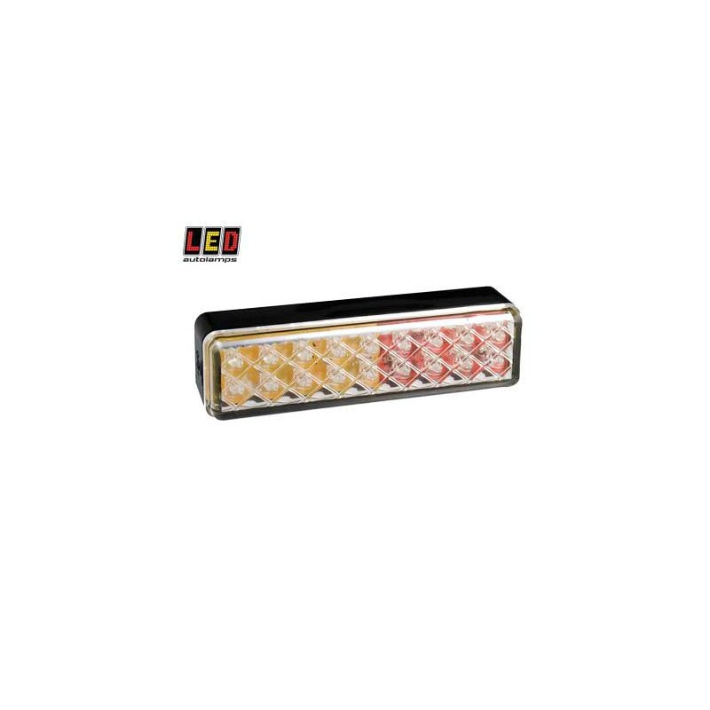 Kompakts LED kombinētais lukturis, bremžu, gabarītu un pagrieziena funkcijas. Virsmas stiprinājums, melns kronšteins. 2 stiprinājuma caurumi, attālums 80mm, kabelis 180mm. ECE, EMC, IP67. Atļauts uz ceļa.