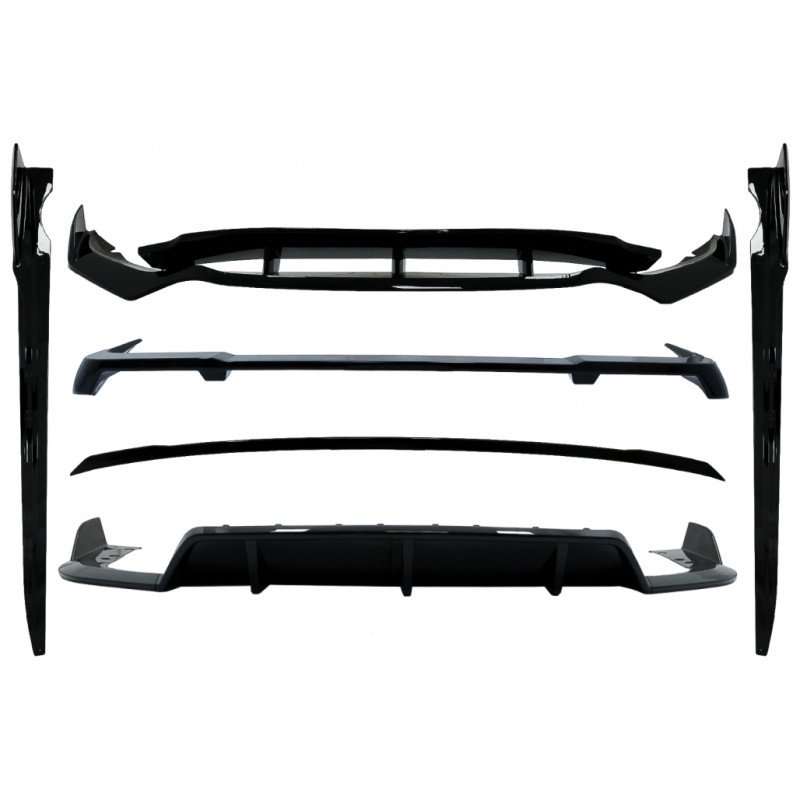 The front lip, rear diffuser, side skirts extensions, roof spoiler and trunk spoiler crafted in high-quality polypropylene