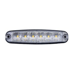 Dzintara LED stroboskops, 6 LED, 18W, caurspīdīga apaļa lēca, ECE R65 un ECE R10 apstiprināts, IP67.