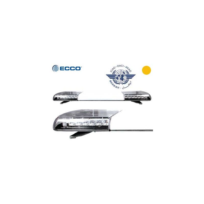 LED brīdinājuma panelis, ECCO 1070mm ICAO, dzeltens, caurspīdīgs vāks, 12 LED moduļi ar ICE optiku, centrālais apgaismojums ar opāla vāku: 457mm, R65 1. klases jauda, alumīnija šasija, polikarbonāta pamatne un vāks, ICAO apstiprināts. Temperatūra -30°C…+50°C, stiprinājuma kājiņas pievieno 44mm, 4.5m kabelis. ECE R65, R10, EMC, CISPR 25. Nav paredzēts lietošanai uz ceļa bez apstiprinājuma.