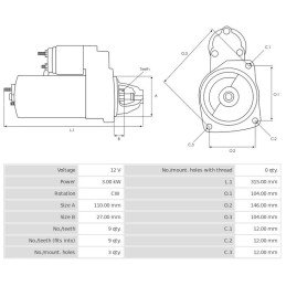 Starteris restaurēts 12V/3.0Kw 9z CW -Nērings 0001230007 Bosch-R