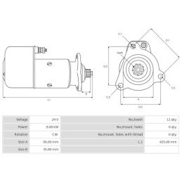 Starteris restaurēts 24V/8.0Kw 11z CW -PLA CS806 Magneton-CN
