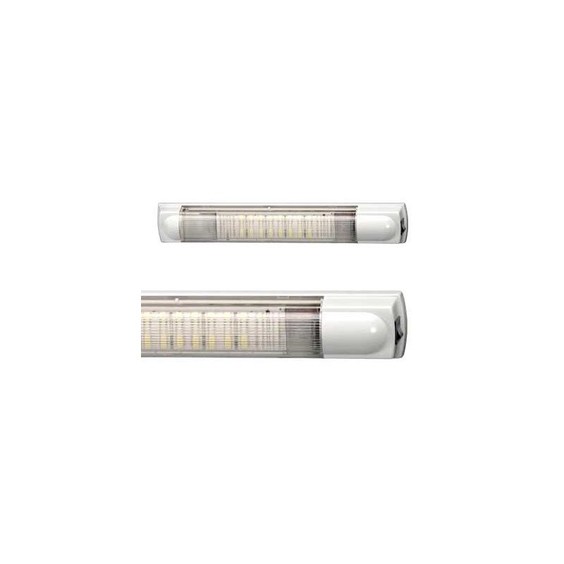 12 jaudīgas LED, 100lux @1m, 4000K, 3.5W, caurspīdīgs, ar slēdzi, izturīgs un triecienizturīgs lēca un korpuss, virsmas montāža, EMV. Aizsardzība pret apgriezto polaritāti un sprieguma svārstībām, 2 skrūves, attālums 193.5mm, -40°C…+60°C. Nav ECE apstiprinājuma. Tikai salona vai ārpusceļa lietošanai.