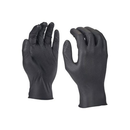 Перчатки защитные, 50 шт., способ применения: перчатки одноразовые, нитрил, цвет: чёрный, размер: L, противоскользящие; твердость покрытия; гибкость