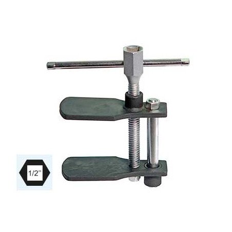 Быстро и просто отделяет поршни в суппортах, помогает вернуть поршень тормозного суппорта без повреждений. Размер раскрытия: 115x50x6мм, скользящий болт 100мм, T-образный скользящий болт с 21мм шестигранной головкой и вставкой 1/2"
