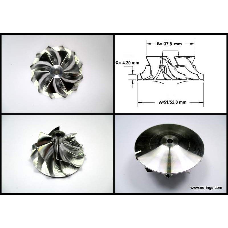 Крыльчатка компрессора большой 37.80x52.80x6/6 (Billet-KKK-K04) -CNJ CW16-330T Kkk-CN