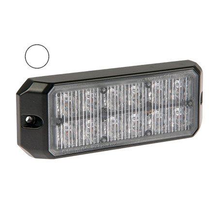 Прозрачный белый светодиодный маяк с 12 светодиодами высокой интенсивности, прозрачным объективом, 25 режимами мигания с 3 режимами (сверху-вниз, слева-направо, крест-накрест). Энергонезависимая память сохраняет последний режим. Синхронизируется с несколькими устройствами, низкое энергопотребление, защита от переполюсовки. Класс защиты IP67, алюминиевое основание для рассеивания тепла. Сертифицирован SAE / Title XIII / ECE R65 класс 2 / e13 / R10.