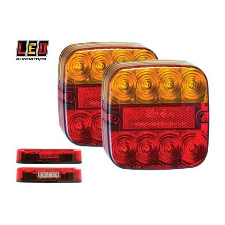 Пара компактных светодиодных задних комбинированных фонарей (стоп, габарит, поворот, отражатель). В одном фонаре подсветка номера. Одобрено ECE, EMC, степень защиты IP67. Крепление: 2 винта, расстояние 90мм, кабель 500мм. Подходит для малых прицепов. Разрешено для дорог общего пользования.